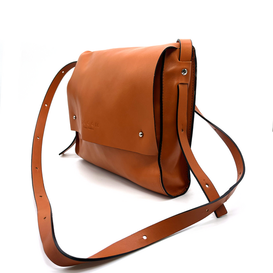I do not use any synthetic materials that are called vegan leather alternatives. "Happy leather" is currently the most sustainable option to produce bags that can be used for a lifetime. Hides and skins are a by-product of the meat and dairy industry, and transformation into leather is the best use for those hides. Leather is a high quality material that is very long-lasting and – unlike other materials – becomes more beautiful over time.