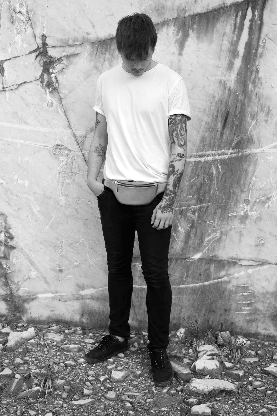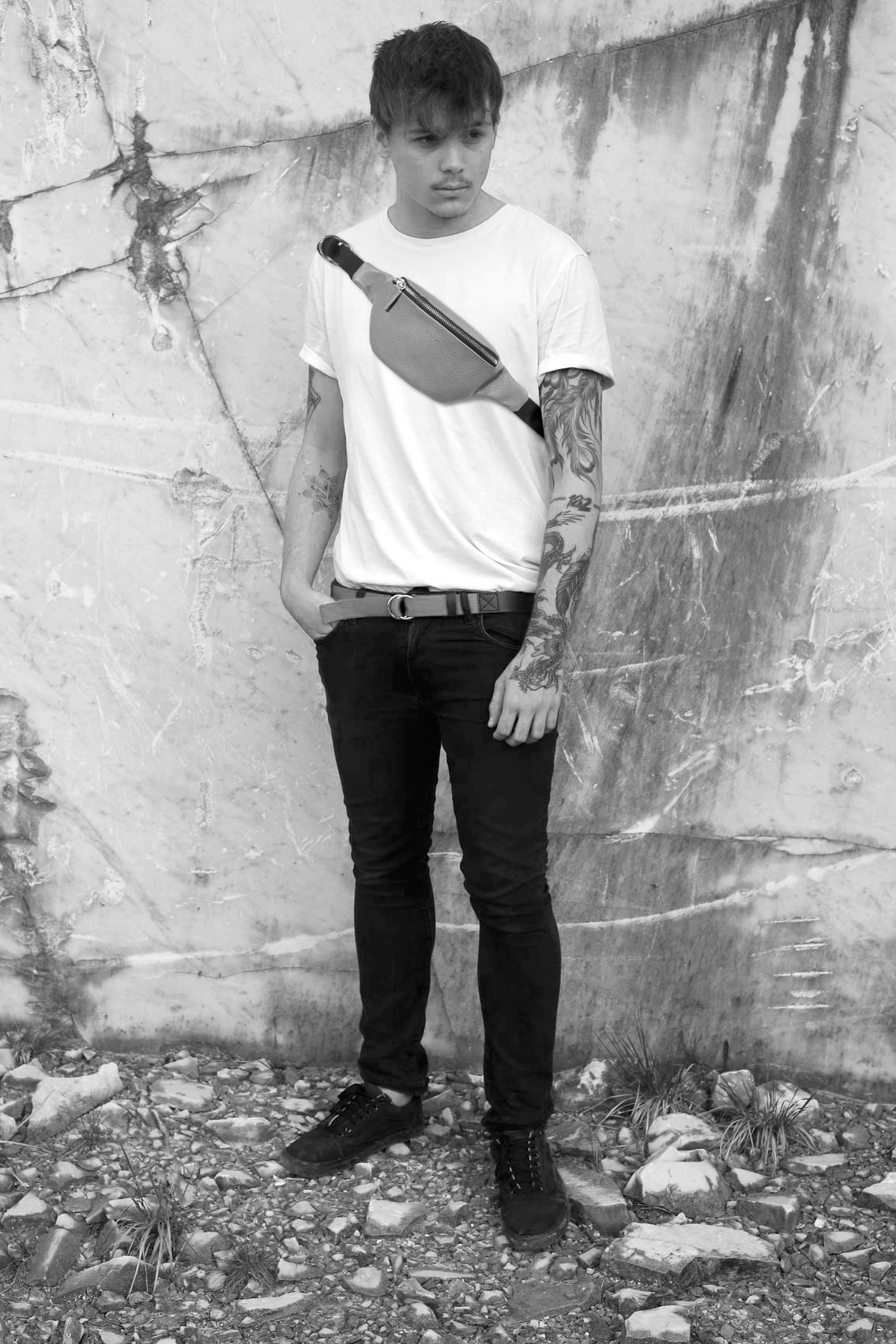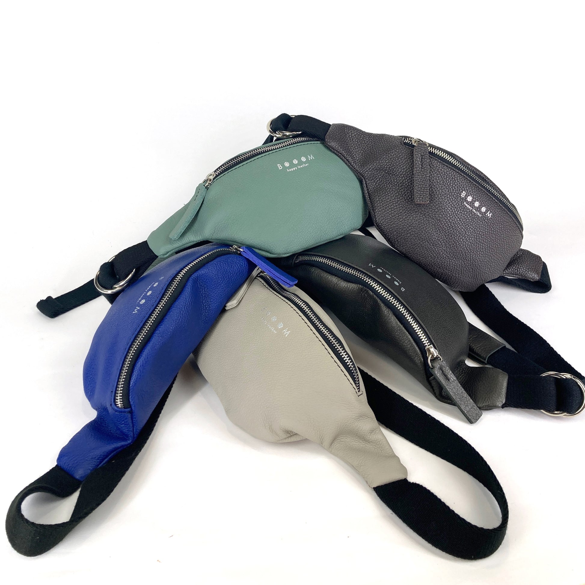 Bum Boom is a functional bag crafted with an adjustable webbing strap that can be worn over the shoulder, cross the body, or at the waist. Made from a resistant quality leather, Bum Boom has one compartment and a metal buckle closure on the webbing strap.